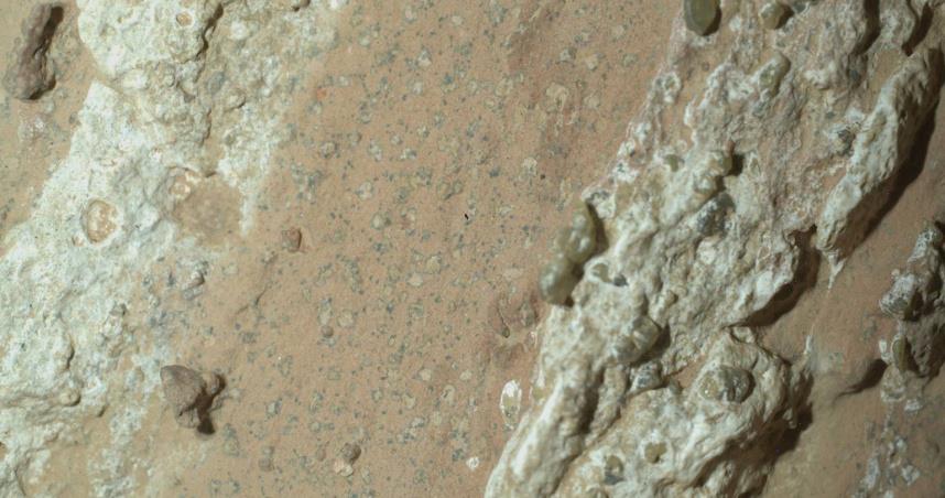 毅力號(Perseverance)火星探測器去年在耶澤羅隕石坑邊緣採集的一塊岩石樣本,出現被稱為「豹紋」的特殊斑點。(圖/翻攝自美國太空總署官網)