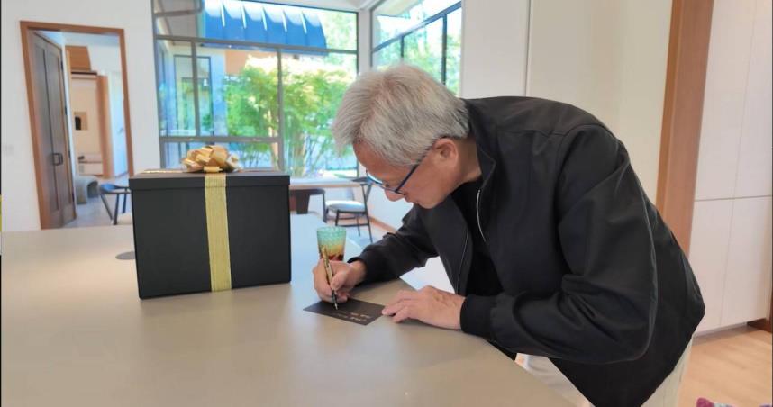 黃仁勳親筆寫下「給機器人,享用你的新大腦!」引爆話題。(圖/翻攝自X/nvidia)