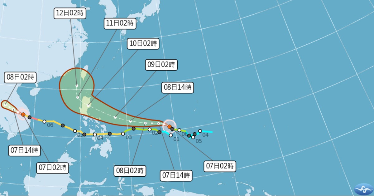根據目前預估,下週一、二將是對台灣影響最明顯的時段,若路徑維持現況,海上警報預計於週一發布,陸上警報可能在週二發布。不過,鳳凰的北轉幅度仍需進一步觀察,氣象署將持續監測動態。