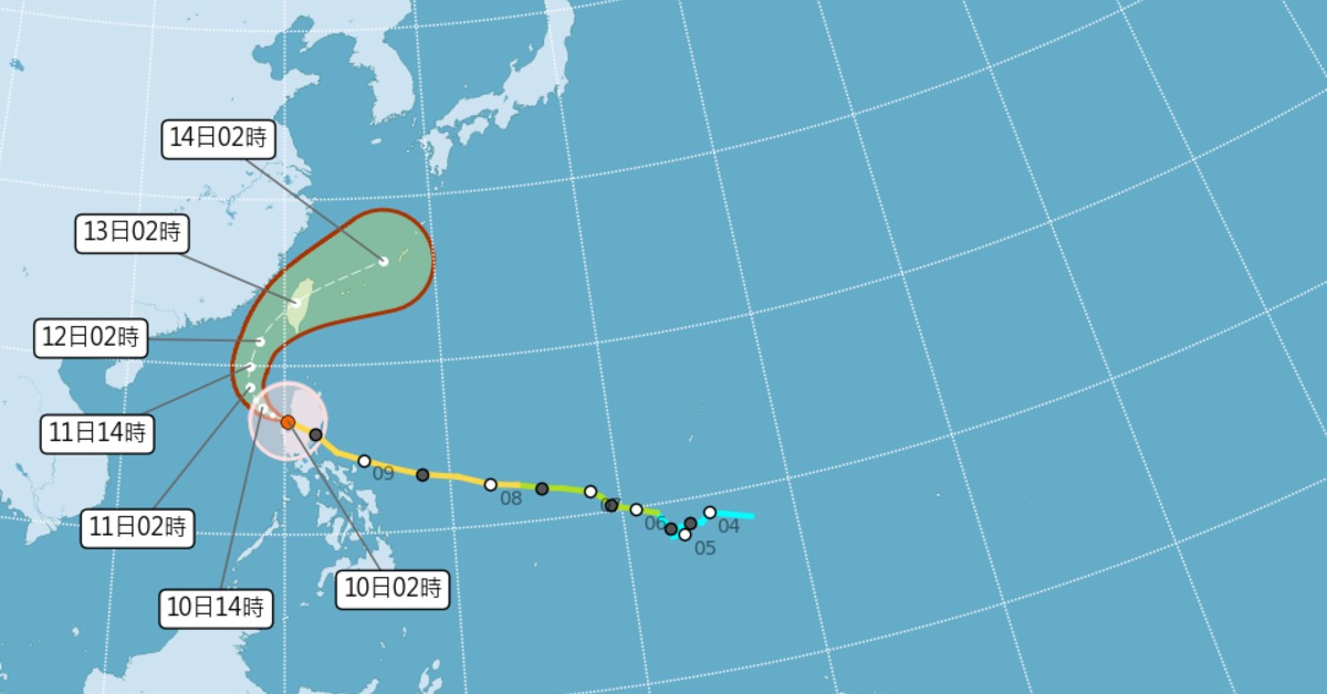 氣象署預估,周三、周四颱風及其外圍環流與東北季風共同影響,降雨強度將視颱風強度及路徑而定。周三颱風中心逐漸接近西半部,中南部、花東地區將出現陣雨並伴隨局部豪雨,北部與東北部有短暫陣雨;周四隨颱風減弱遠離,降雨將趨緩,但北部仍有局部較大雨勢。