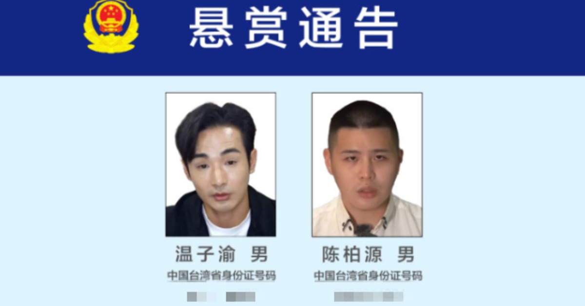 繼民進黨立委沈伯洋遭中國通緝之後,福建省泉州公安局發布懸賞通告,徵集台灣網紅溫子渝(網名「八炯」)、陳柏源(網名「閩南狼」)違法犯罪線索,主要的罪名是煽動分裂國家言論、迫害在台大陸配偶等。