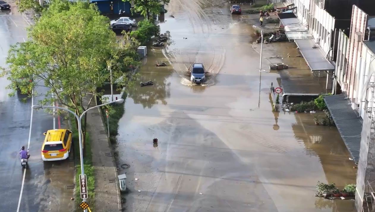 蘇澳市區有民眾車輛拋錨路中央,未料竟被裝甲車輾過成廢鐵。另蘇澳中華路一度水淹超過1層樓,現在滿地爛泥。