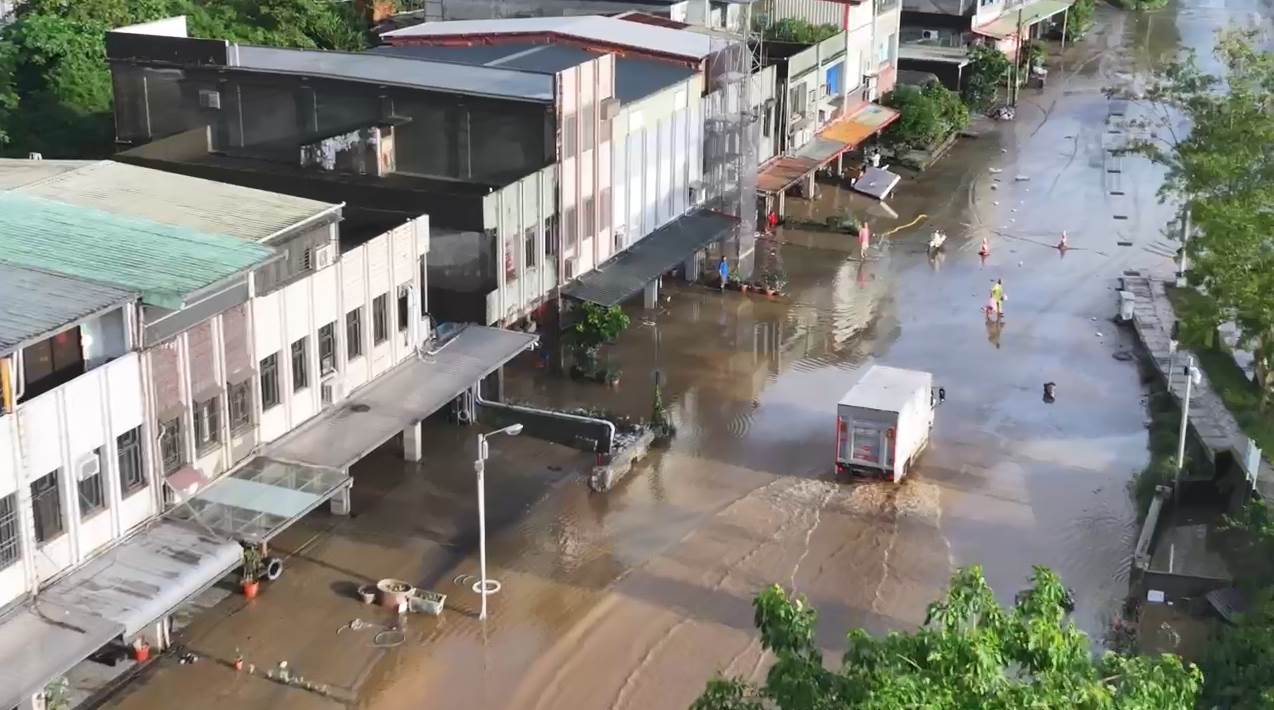 宜蘭羅東鎮仍有部分地區積淹水。(圖/東森新聞)