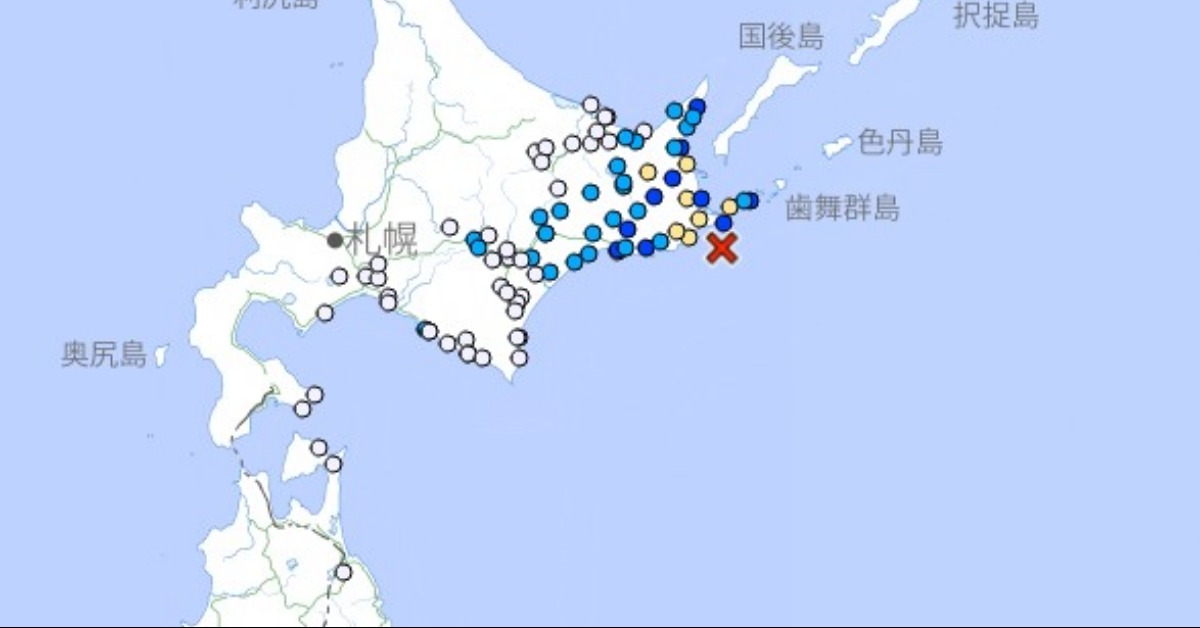 據日本氣象廳資訊顯示,當地時間晚間7時03分,北海道根室半島南東海域發生規模5.2的地震,震源深度40公里,多地有感,包含釧路市、濱中町、中標津町、標津町、別海町、根室市測得最大震度4;厚岸町、標茶町、羅臼町最大震度3;連隔了一個海峽的青森縣也測得震度1。