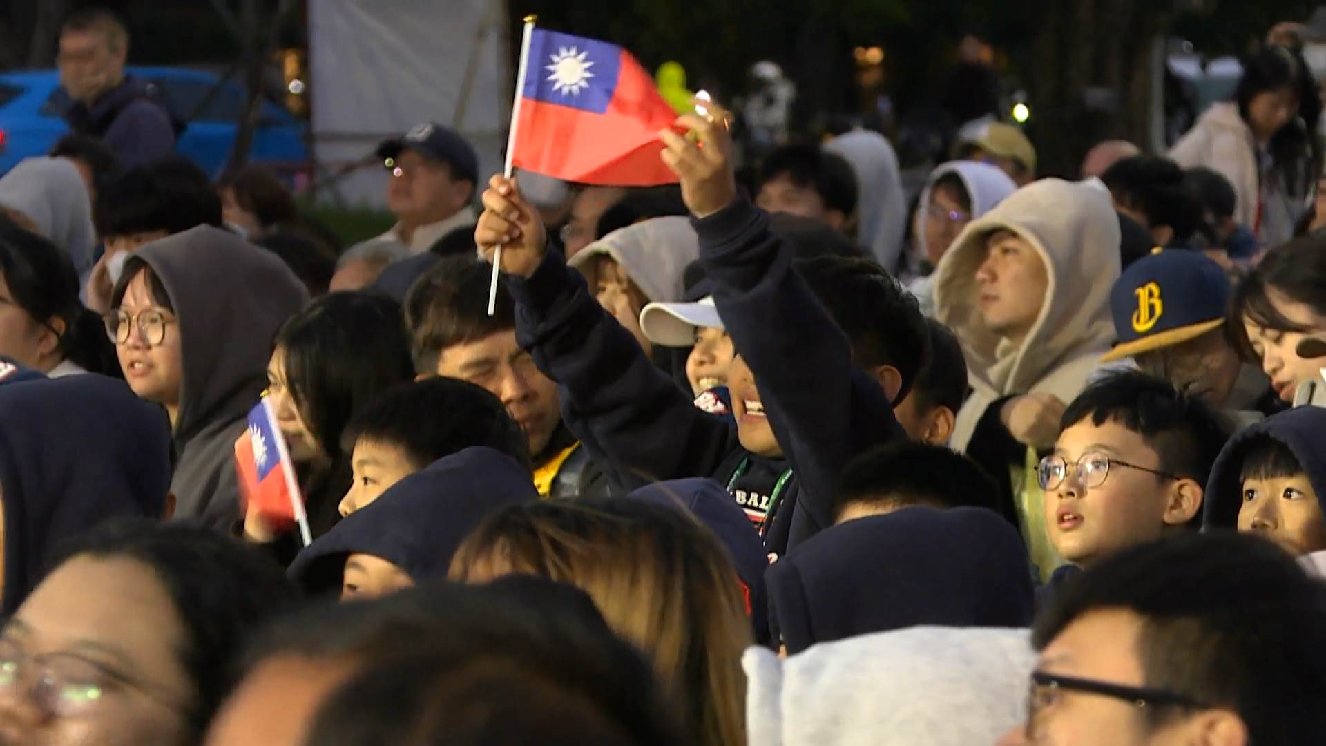 新竹市政府,這回在後站停車場,舉辦的戶外直播應援活動,現場球迷為中華隊的拚戰精神喝采。(圖/東森新聞)