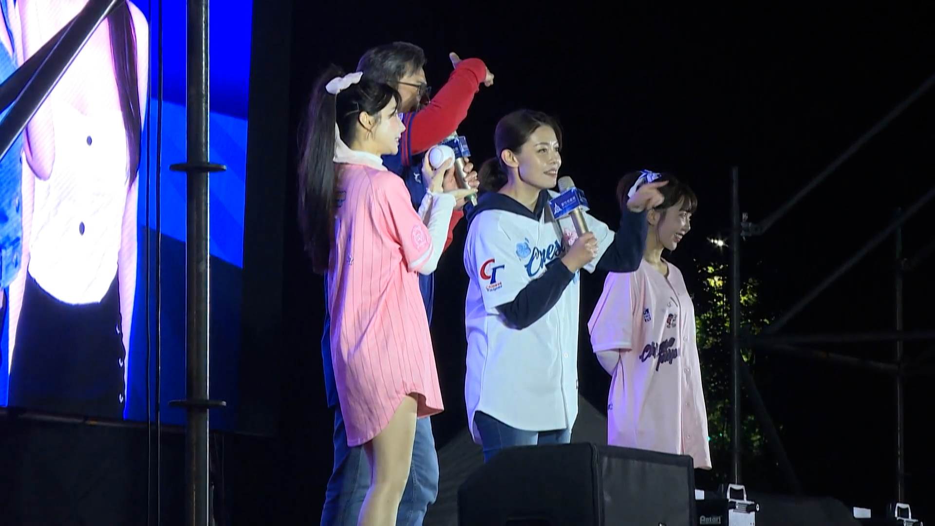 新竹副市長林琨瀚也在台上與應援隊長GGG默契搭配,向球迷送出多顆親筆簽名球,炒熱現場氣氛。(圖/東森新聞)